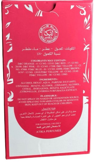 Alcohol Denat, Aqua, Parfum, D.E.P. Amyl Cinnamal, Benzyl Alcohol, Cinnamyl Alcohol, Citral, Isoeugenol, Benzyl Salicylate, Citronellol, Geraniol, Furfuracea Extract